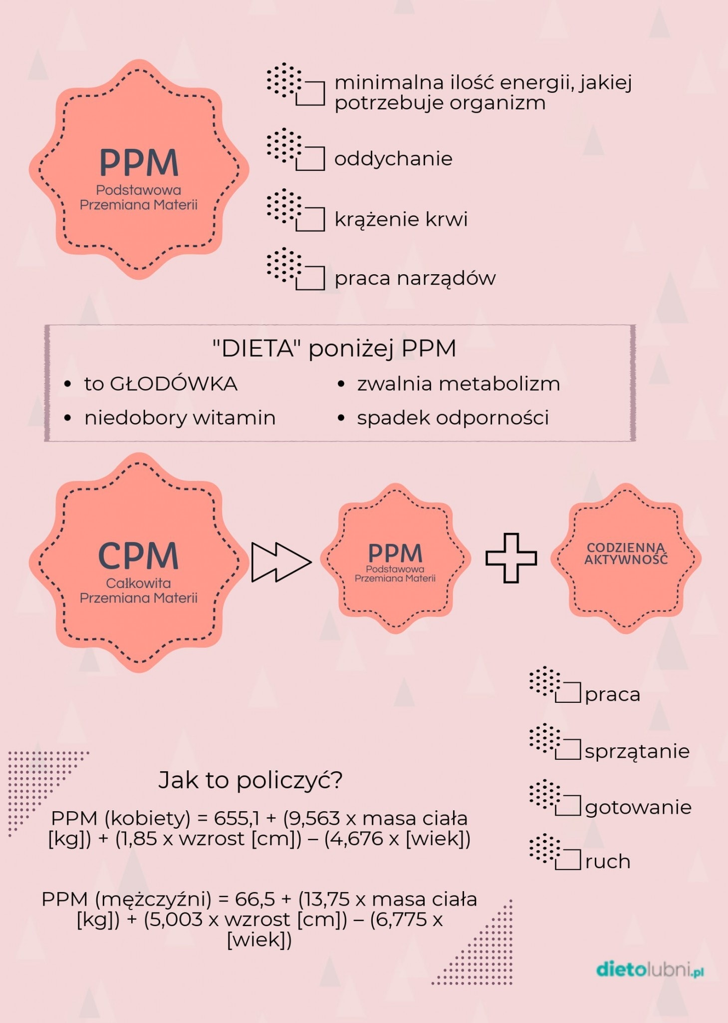 Podstawowa Przemiana Materii (PPM), bo o niej mówimy to ta ilość kalorii, którą codziennie musisz zjeść, żeby Twój organizm mógł normalnie funkcjonować.