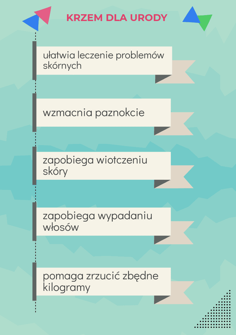 Jego właściwości z pewnością spodobają się paniom, które dbają o urodę. Odpowiednia ilość krzemu w diecie zapewni im mocne włosy i paznokcie. Krzem zapobiega też wypadaniu włosów i przyspiesza ich wzrost. Kolejną rolą krzemu w organizmie jest zapobieganie wiotczeniu skóry, dzięki czemu później pojawiają się zmarszczki, ułatwia też leczenie zmian skórnych jak trądzik, liszaj i egzema.